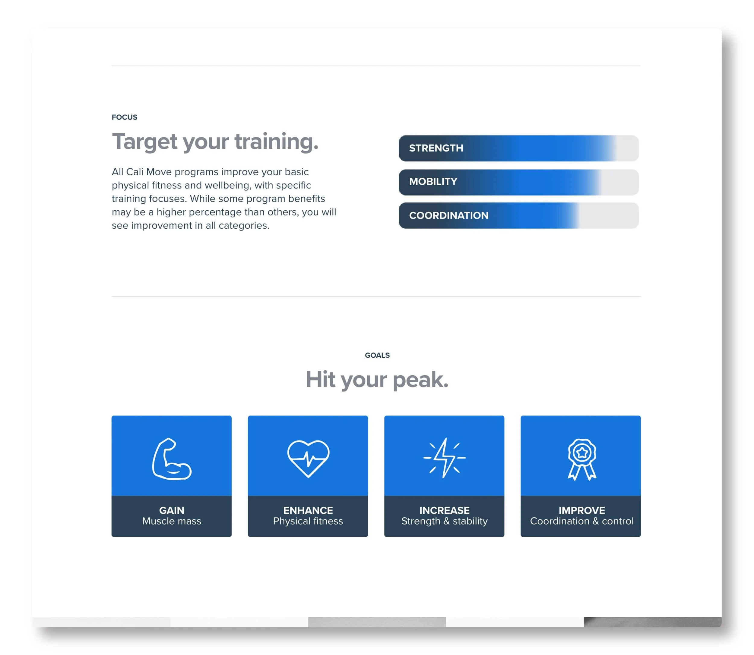 With a growing subscriber base on YouTube, Cali Move wanted to redesign and update its program product pages to appeal to the diverse fitness needs of its users.