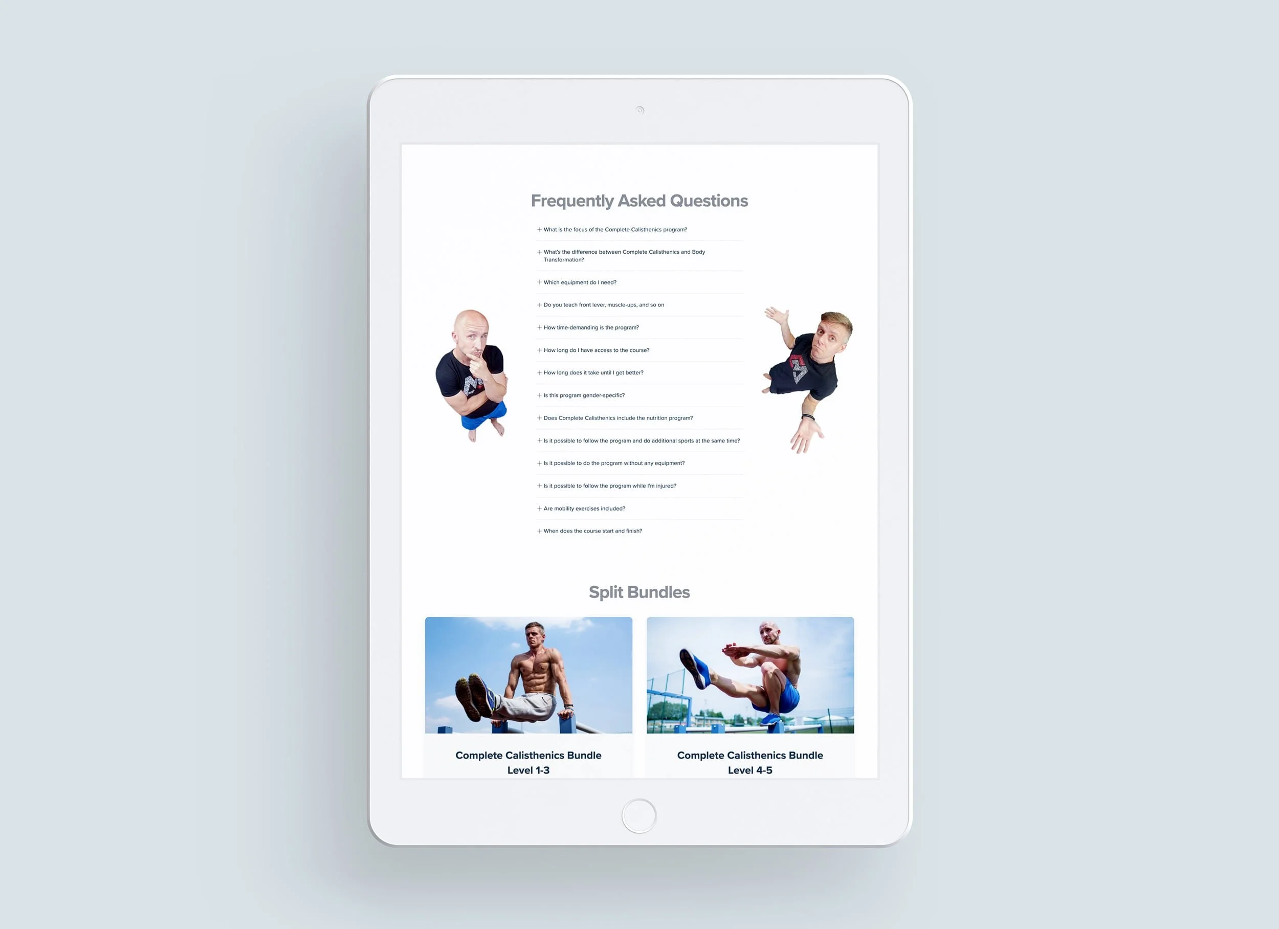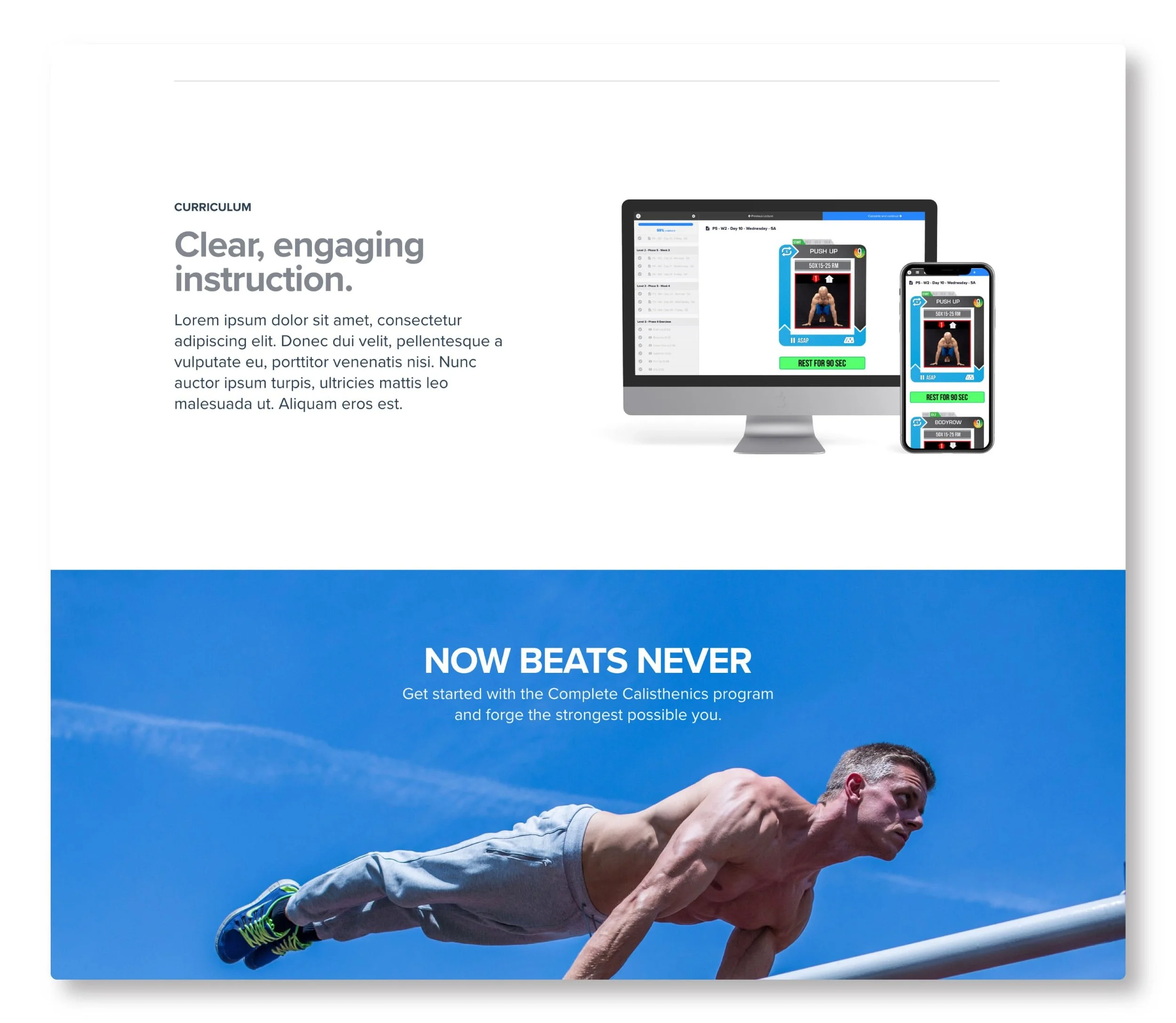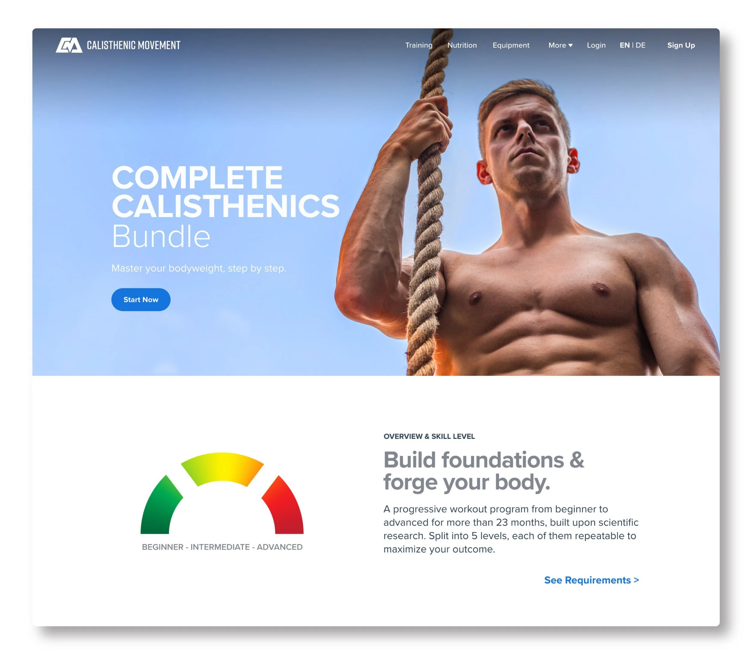 We created a standardized layout and information flow for all programs, including Complete Calisthenics, Mobility, Body Transformation, and Home Workout.
