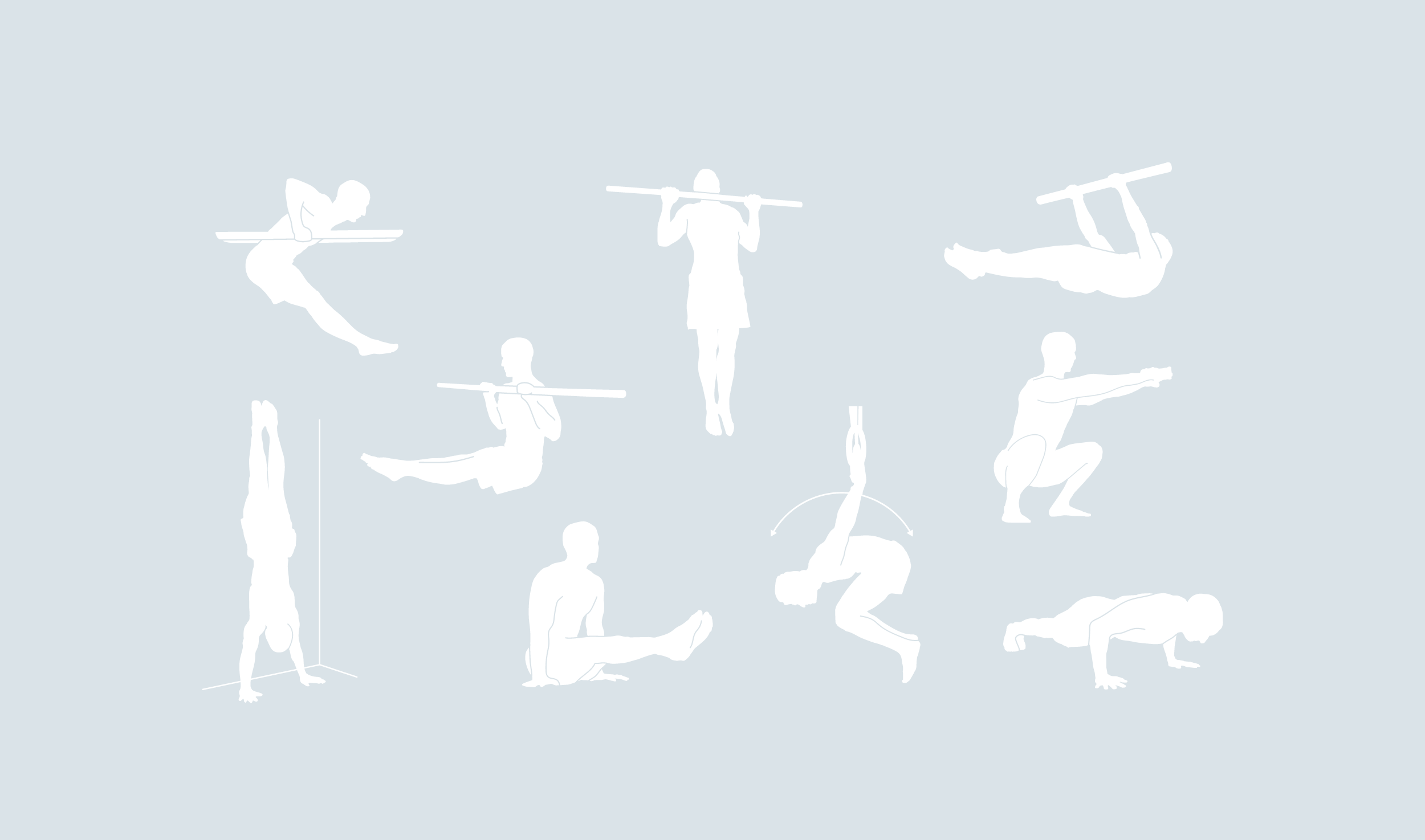 To show what kind of exercises users need to do in the Requirements section, Sven and Alex provided photographs. I created silhouettes and a simple information panel to display the various exercises and their rep/time ranges.