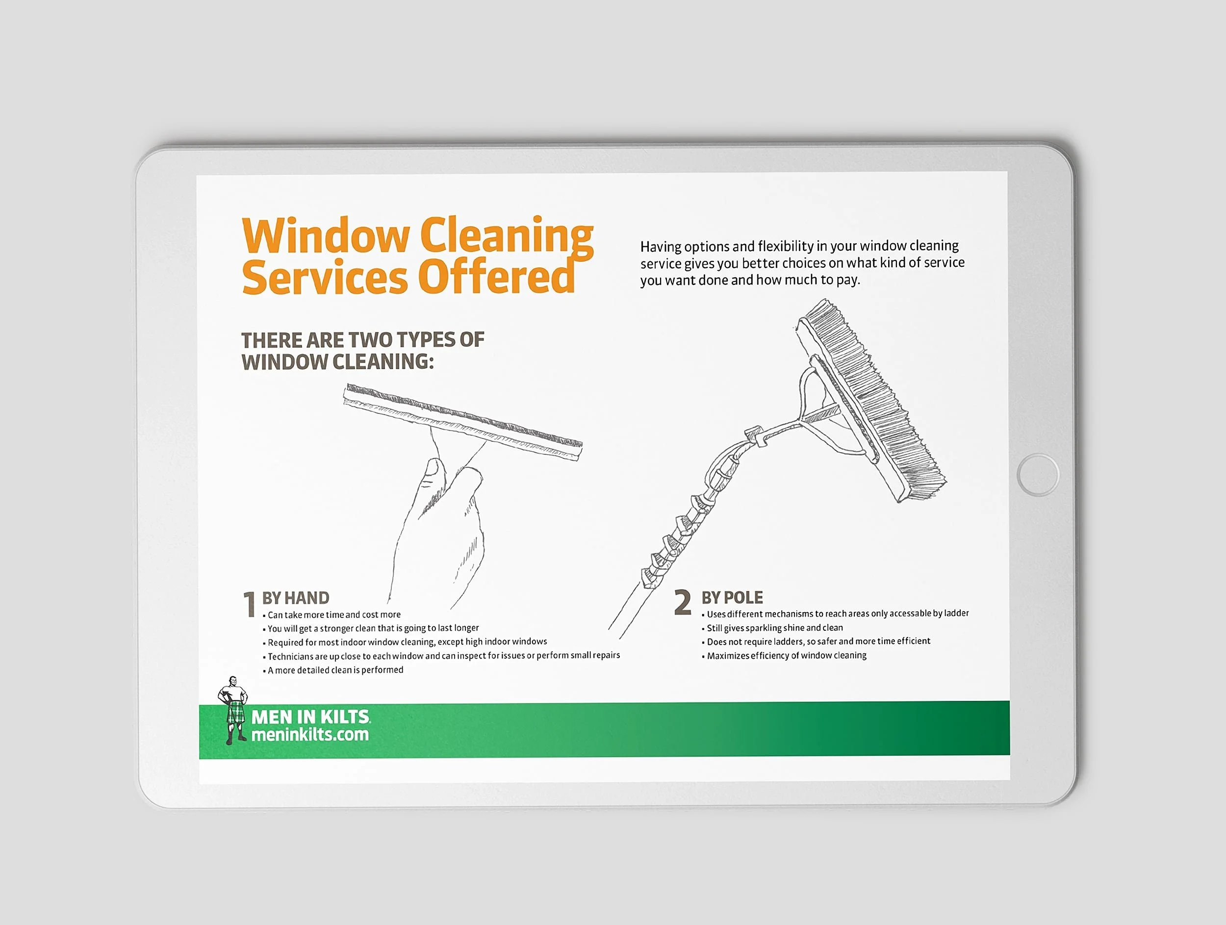 Men In Kilts provides specific cleaning services that often need explanation or photographic examples. It was essential to highlight the range and value of professional cleaning to help potential clients address their needs.